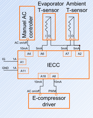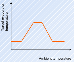 Zwei Temperatursensoren sorgen für optimale Leistungsregelung. Die Drehzahl wird auf die Verdampferausblastemperatur geregelt. Diese Verdampfertemperatur kann in Abhängigkeit von der Umgebungstemperatur unterschiedlich sein.